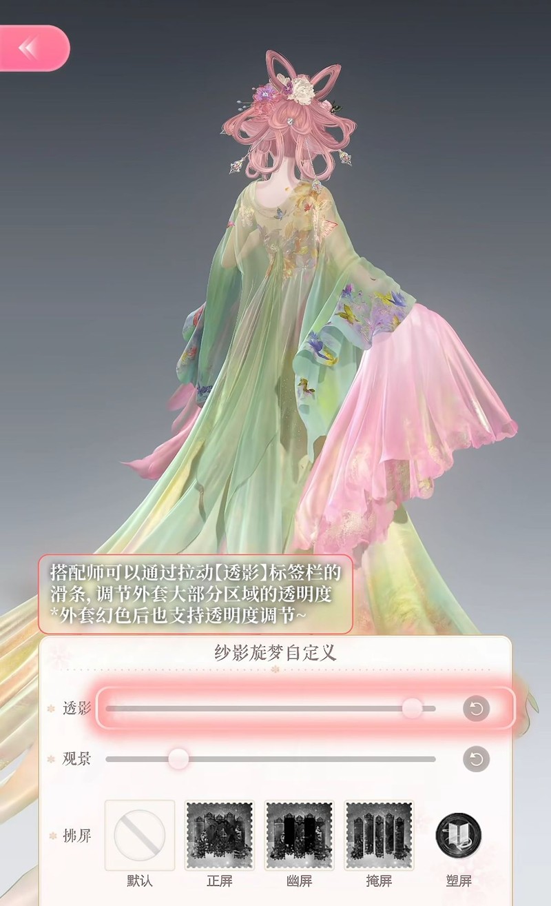 1.触发条件:穿戴外套【永驻残春】后,可在【纱影旋梦】面板中解锁【透影】功能。