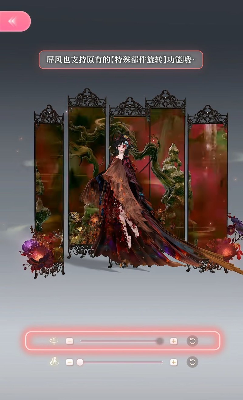 闪耀暖暖发布了【焚骨入画屏】套装特性展示视频,揭示了这款全新非凡套装的5大特异功能。蝶翅轻翕,穿梭志怪世界。臻藏<画屏>套装【闪耀·焚骨入画屏】拥有5大特异功能:支持穿梭屏风内外、自定义旋转屏风、外套透明度调节等!