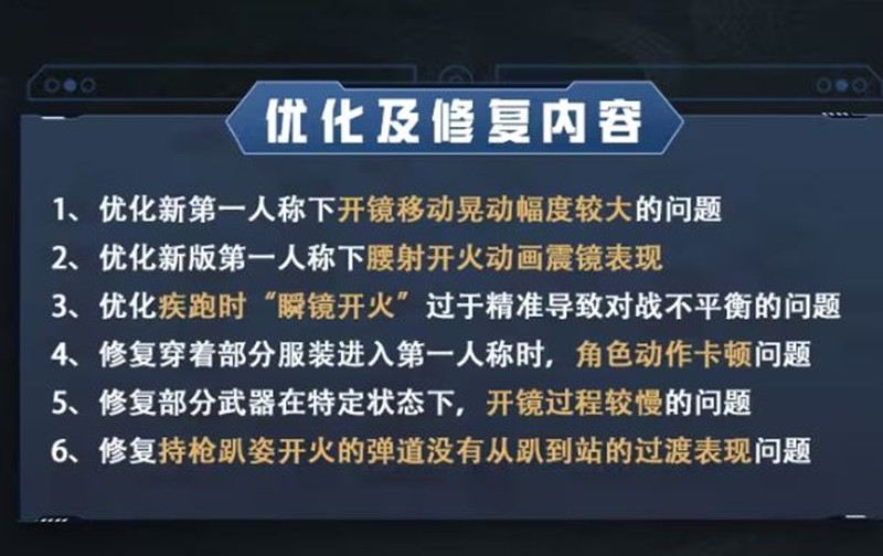 调整了疾跑时“瞬镜开火”过于精准导致对战不平衡的问题,使战斗更加公平。