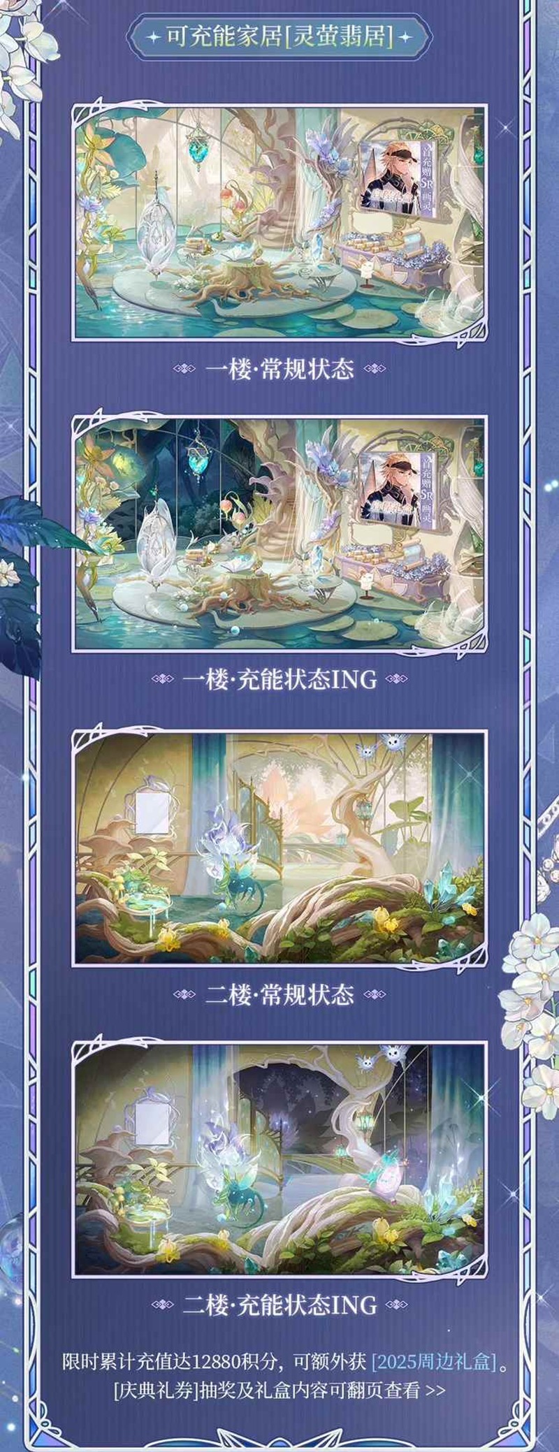► 活动期间,累计充值达对应积分,可得叶瑄SSR[溯时契]、可充能家居[灵萤翡居]、[庆典礼券]等奖励。