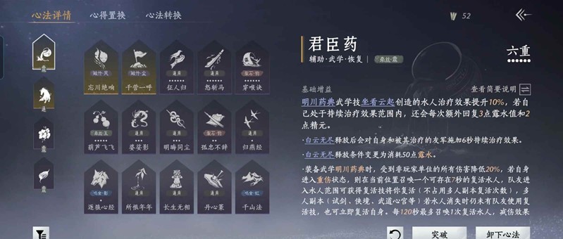 心法的选择:以下仅介绍通用心法,以6重效果为准流派心法之后介绍