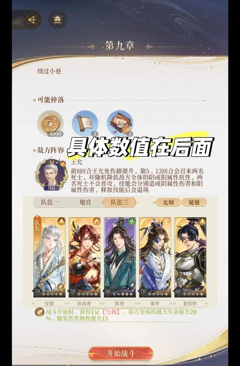 以上就是如鸢代号鸢主线第九章9-13王允低低练度怎么过攻略的全部内容了,更多游戏资讯,攻略内容敬请关注切游网,您的支持是我们努力的动力!