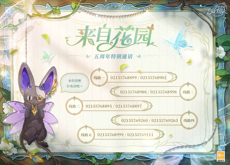 时空中的绘旅人来自花园·五周年特别通话今日开启~9月25日11:00 - 9月26日,在花园的每一天,精灵们都在纵情欢歌,拨打这份特别通讯可以收到来自精灵[芭啾]的留言,还有收到由芭啾储存的其他内容哦。一起来和小编看看吧~