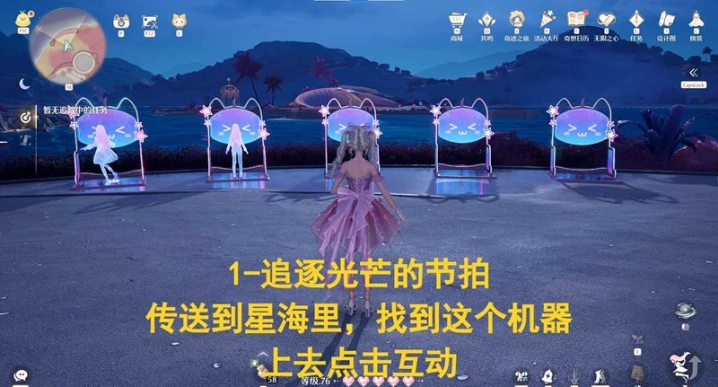 我们传送到星海,找到星间舞台,在附近会有几台跳舞机,我们走进,点击互动;