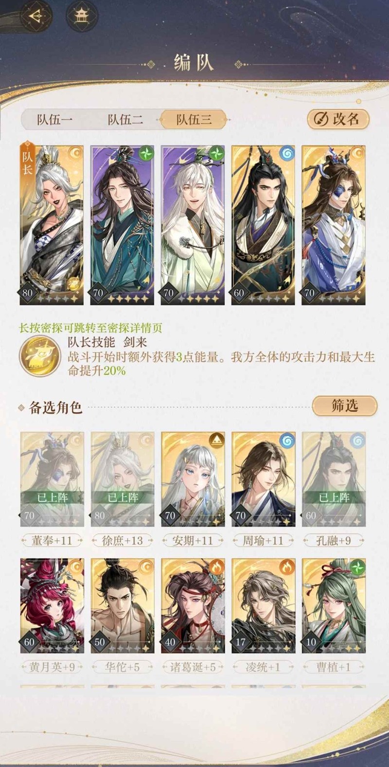 思路打法:除了主C,其他密探都普攻,抗不住都防御,让主C一个人打