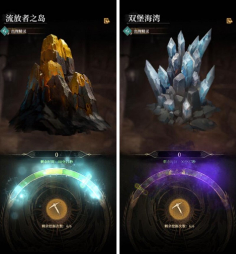 进入矿井后,玩家每天拥有三次采矿机会,每次进入都会自动获得一把简易矿镐。通过采集获得的矿脉材料可用于制作更高级的工具,例如碳钢镐,这类工具能显著提升采矿效率和积分获取速度。矿井的核心玩法围绕一个旋转判定圈展开,玩家需要在恰当时机点击屏幕,命中不同区域可获得对应积分:金色区域为100分,蓝色区域70分,灰色区域30分。精准操作是关键。