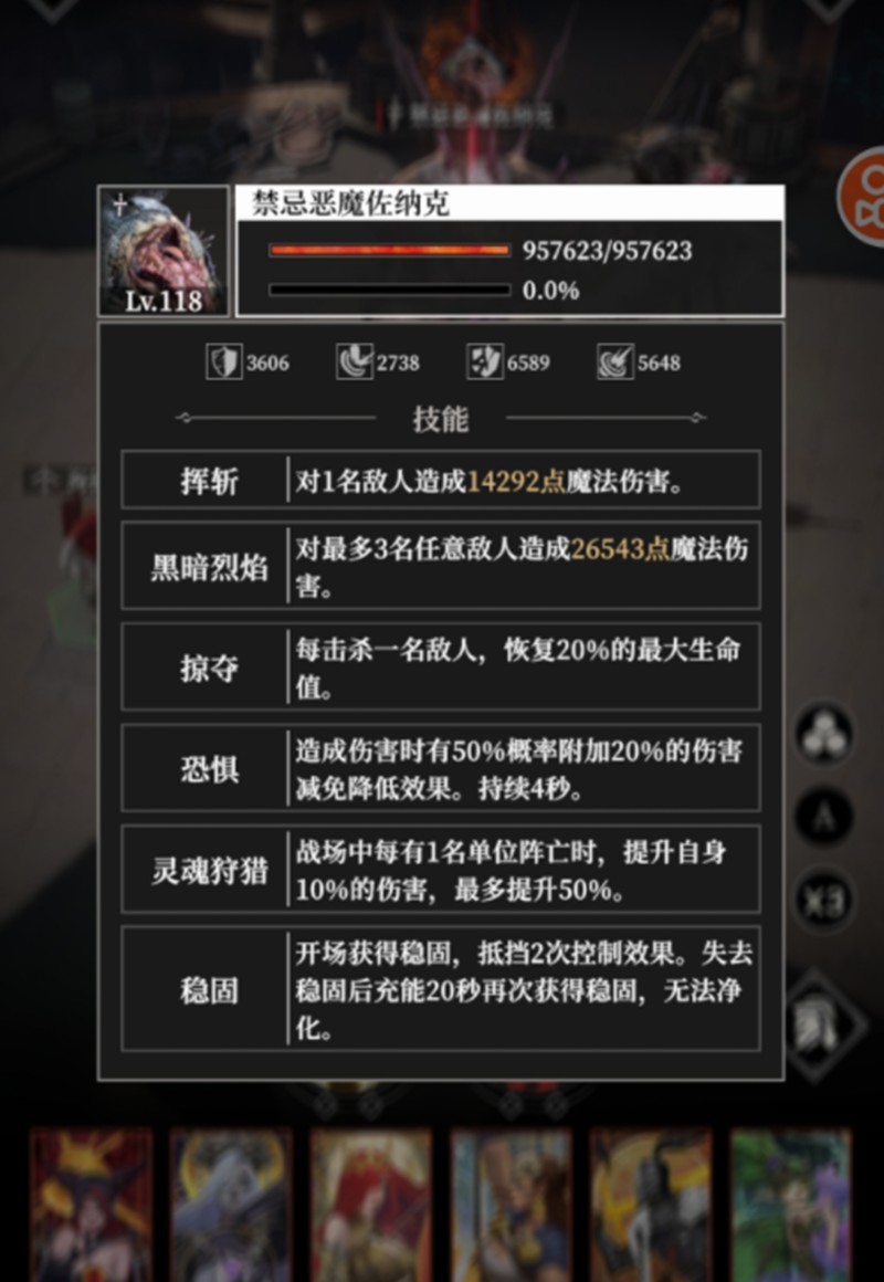 地下城堡4墓穴挑战125层的boss为118级,具备多种强力技能,其中“挥展”可对单体目标造成14292点魔法伤害,威胁极高。此外,其“黑暗烈焰”技能会对场上三名角色造成大范围魔法伤害,若队伍缺乏抗性或站位不当,极易出现团灭情况。因此,在进入战斗前,必须确保前排角色具备足够的魔法防御与生命值,以承受连续的高伤技能。同时,boss的“掠夺”技能不仅能造成伤害,还能恢复自身生命值,若不加以控制,战斗将陷入持久拉锯,极大增加失败风险。
