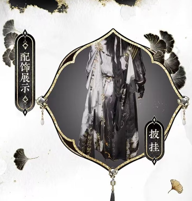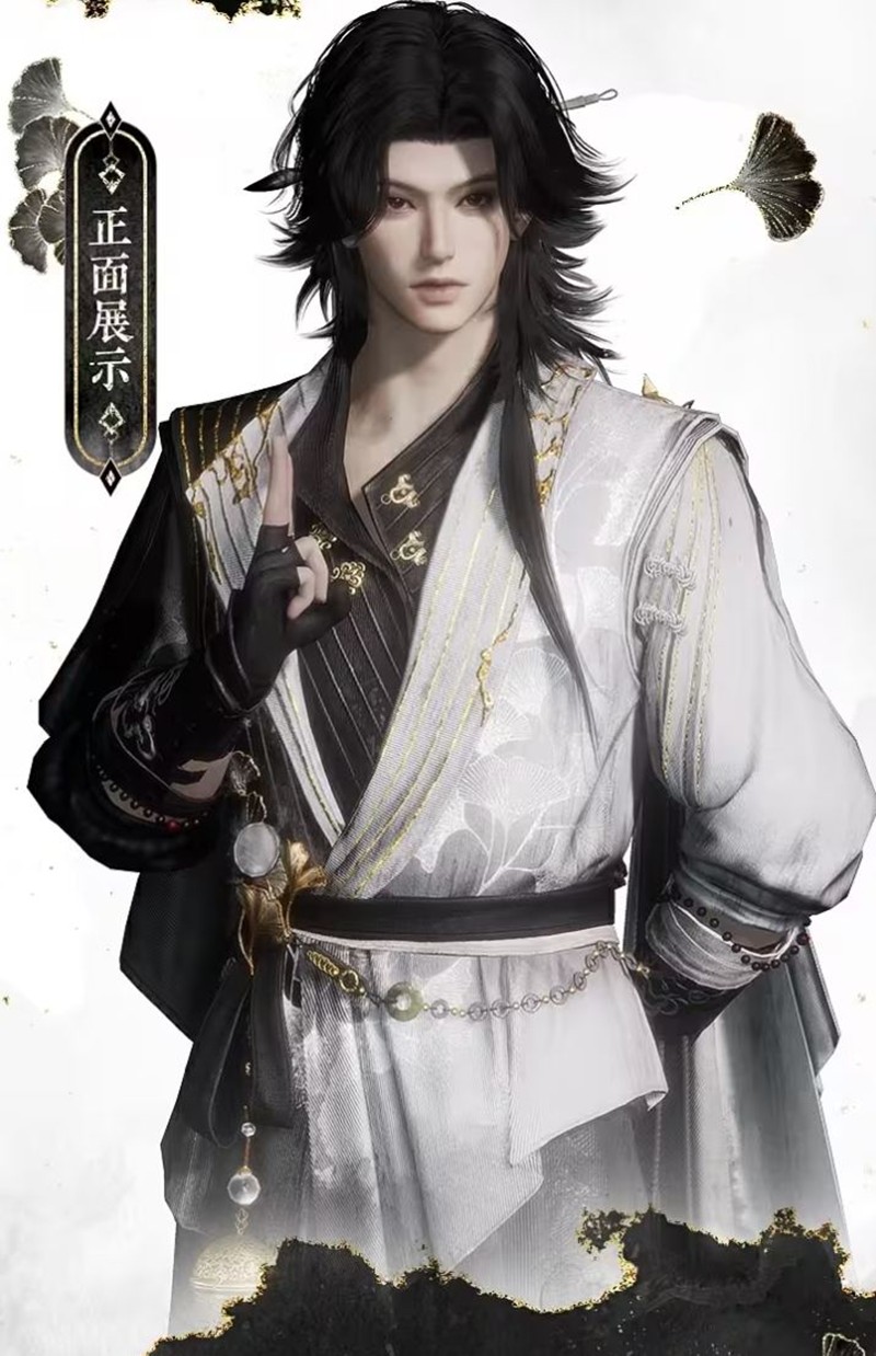 侠士的服饰以素白为主,银杏点缀其间,展现出一种高洁而内敛的侠骨风范。