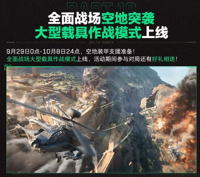 9月29日至10月8日,全面战场大型载具作战模式上线。