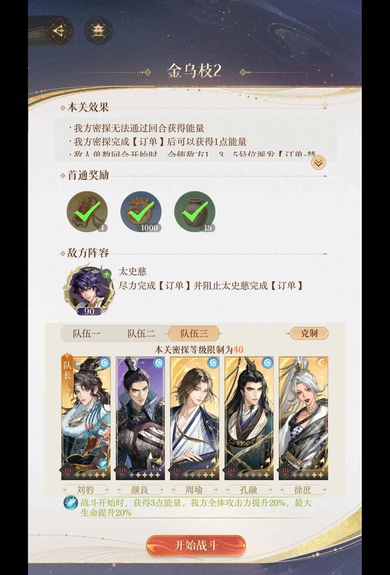 2. 为了防止太史慈获取成果,我方密探必须每三回合放大至少3次(对敌方造成伤害的技能)