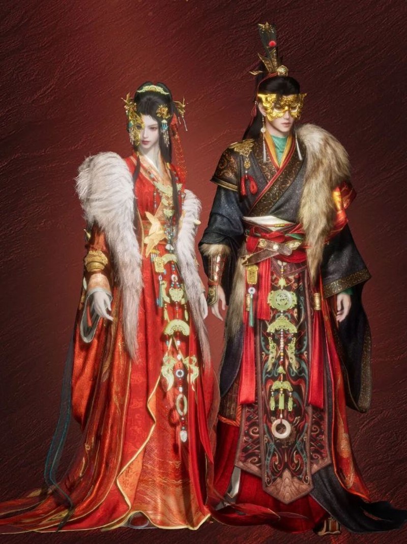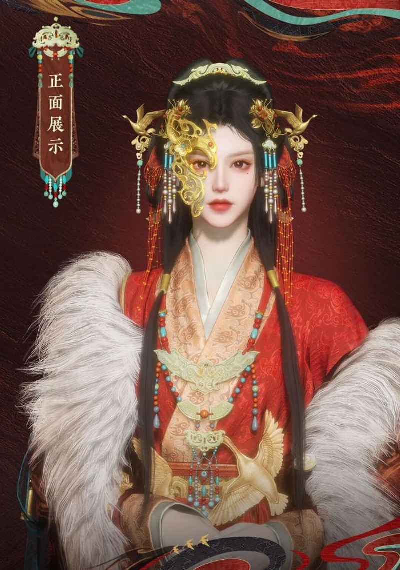 套装整体以万世如意纹的朱红、土红为主色调,这些色彩不仅象征着吉祥如意,也体现了古代帝王的尊贵与权威。衣袍上的图案设计,如凤鸟逐云、鸿雁掠影,都是对古代文化的一种致敬,同时也寓意着玩家在游戏中能够如同凤凰般展翅高飞,鸿雁般自由翱翔。