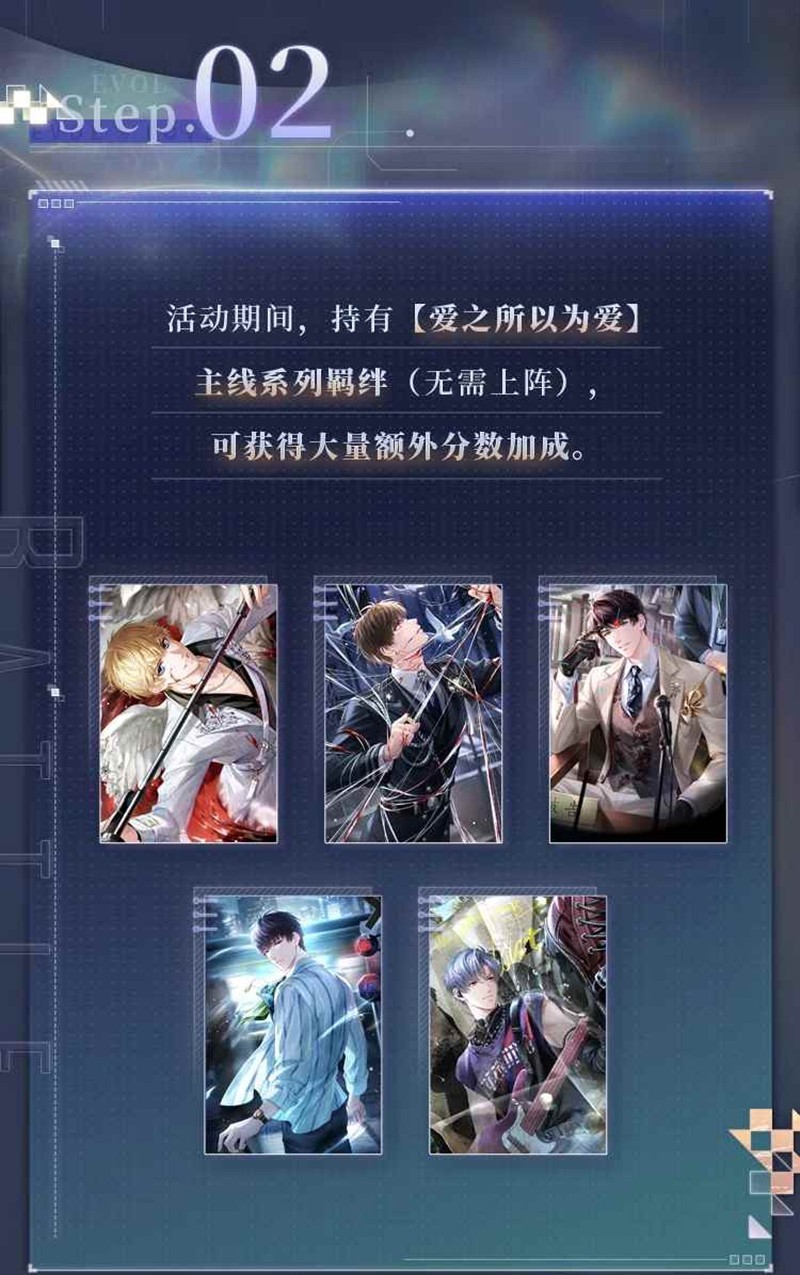 活动期间,持有【爱之所以为爱】主线系列羁绊(无需上阵),可获得大量额外分数加成。