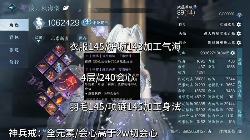 -神兵·戒(全元素)+百炼145套装+145朱颜·扇+145巫雅·项链(身法词条)
