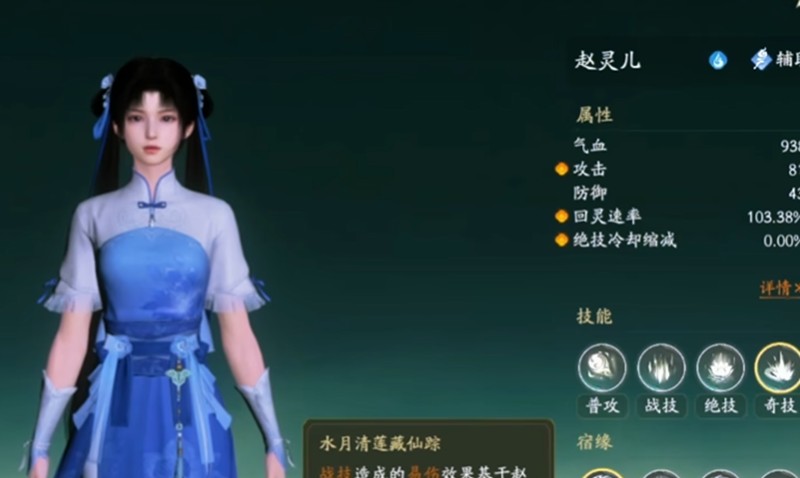 赵灵儿的法术偏向水系与治愈,推荐搭配冰凌小童、角湍幼兽、正一符、灵龟翁。冰凌小童的冰冻控制可为赵灵儿的施法提供安全环境。角湍幼兽的水系伤害加成能增强赵灵儿的整体输出。正一符提供的增益效果可提升赵灵儿的法术强度与续航能力。灵龟翁以其厚重的防御护盾守护赵灵儿,让她安心施展治愈法术。