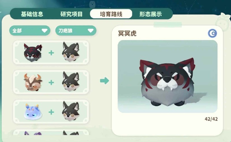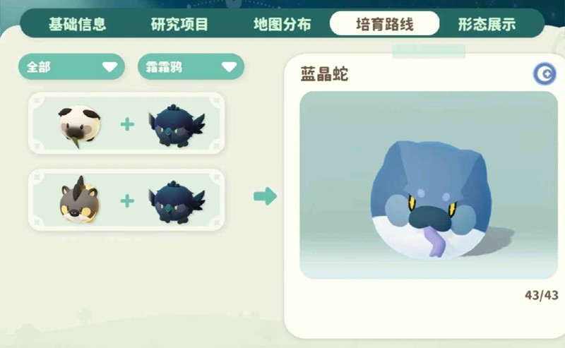 而【霜霜鸦】/【雪夜狼】可以约会出【蓝晶蛇】、【子夜枭】、【刀疤狼】(如图)