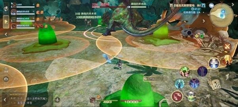 猛毒粘液是本战中最需要团队协作应对的核心机制。BOSS会在场地中心与边缘同时生成4颗猛毒粘液,落地时产生小范围圆形AOE并附加中毒。所有队员需第一时间远离落点区域,避免被波及。粘液落地后会随时间逐渐变大,随后爆炸造成大范围伤害,必须持续保持距离。