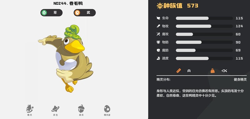卷毛鸭是水武双系坦克型洛克王国世界武精灵,物防130,特防120,生存能力极强。特性得寸进尺在水环境中技能威力翻倍,适合在特定地形作战。22级即可直接进化,月牙泉可用低级球捕捉,获取难度低。技能推荐水之尾与守护,开局可先强化双防,打持久战表现优异,但不具备光合作用回复能力,需依赖药剂维持血量。