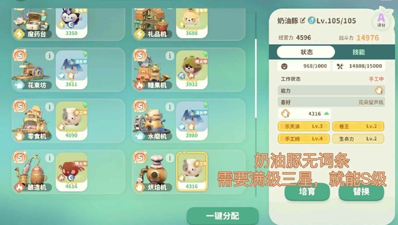 有「2卷王/全能」「4手工姆」的奶油豚,满级轻松S了。