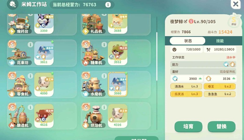 我把「2卷王」「3洒洒水」三星的夜梦鲸升到90级就S了。