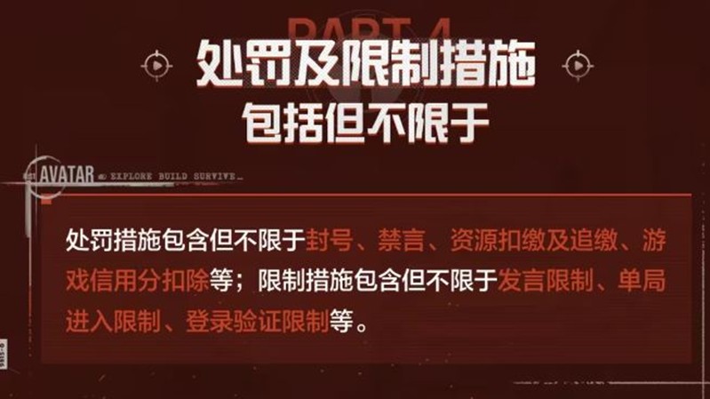 处罚措施包括但不限于封号、禁言、资源扣缴及追缴、游戏信用分扣除等;限制措施包括但不限于发言限制、单局进入限制、登录验证限制等。
