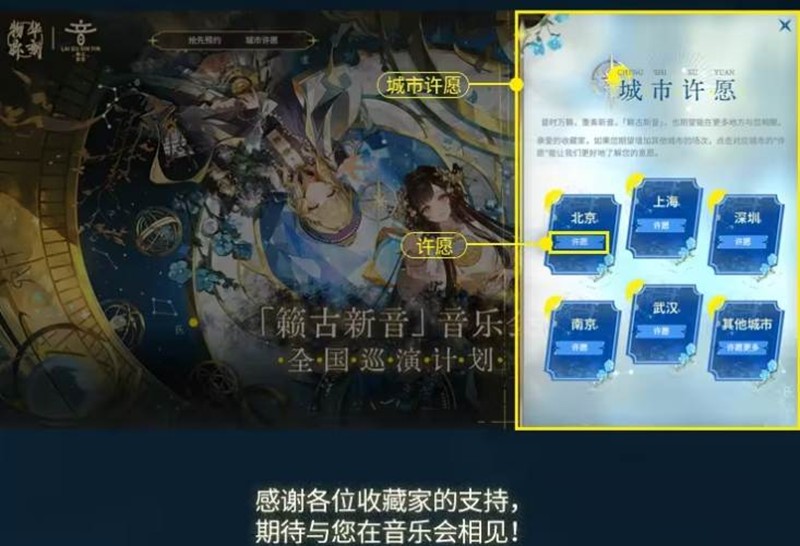 期待已久的物华弥新「籁古新音」音乐会巡演预约现已正式开放!这是一场融合了传统与现代的音乐盛宴,旨在为观众带来全新的听觉体验。现在,您有机会参与决定巡演城市,让您的声音被听见!