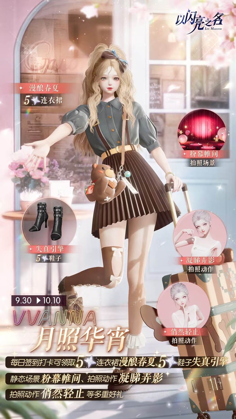 以闪亮之名全新3.5版本「梦谣绮境」将于9月30日至10月20日限时登陆,其中月照华宵活动正式公布了,这也是一个令人惊喜的福利活动,玩家们参与可得五星限定时装外观!下面跟随小编的脚步来一起看看吧。