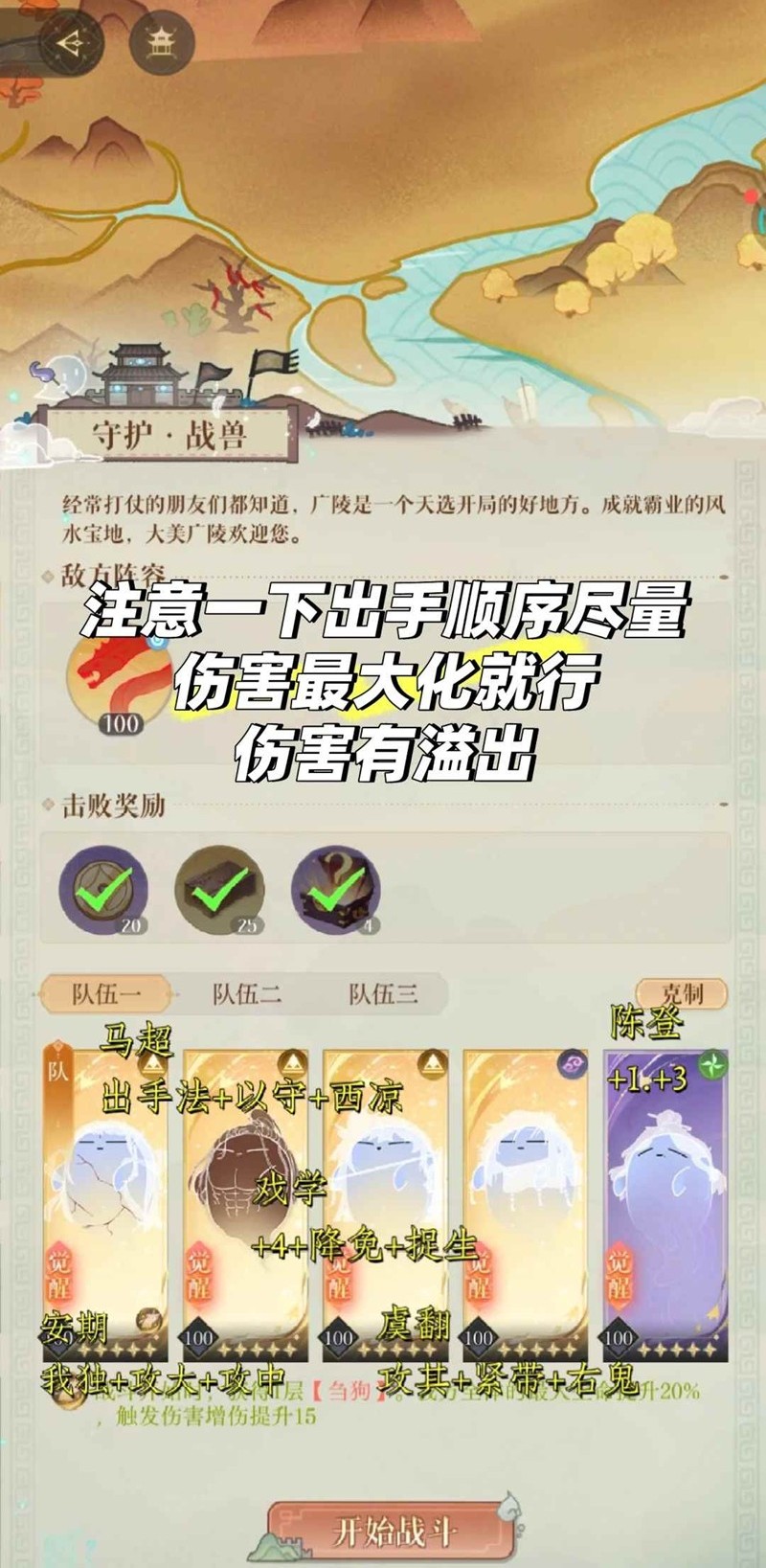 正常打就行,伤害有溢出,可适当注意手法,让安期多放几个大