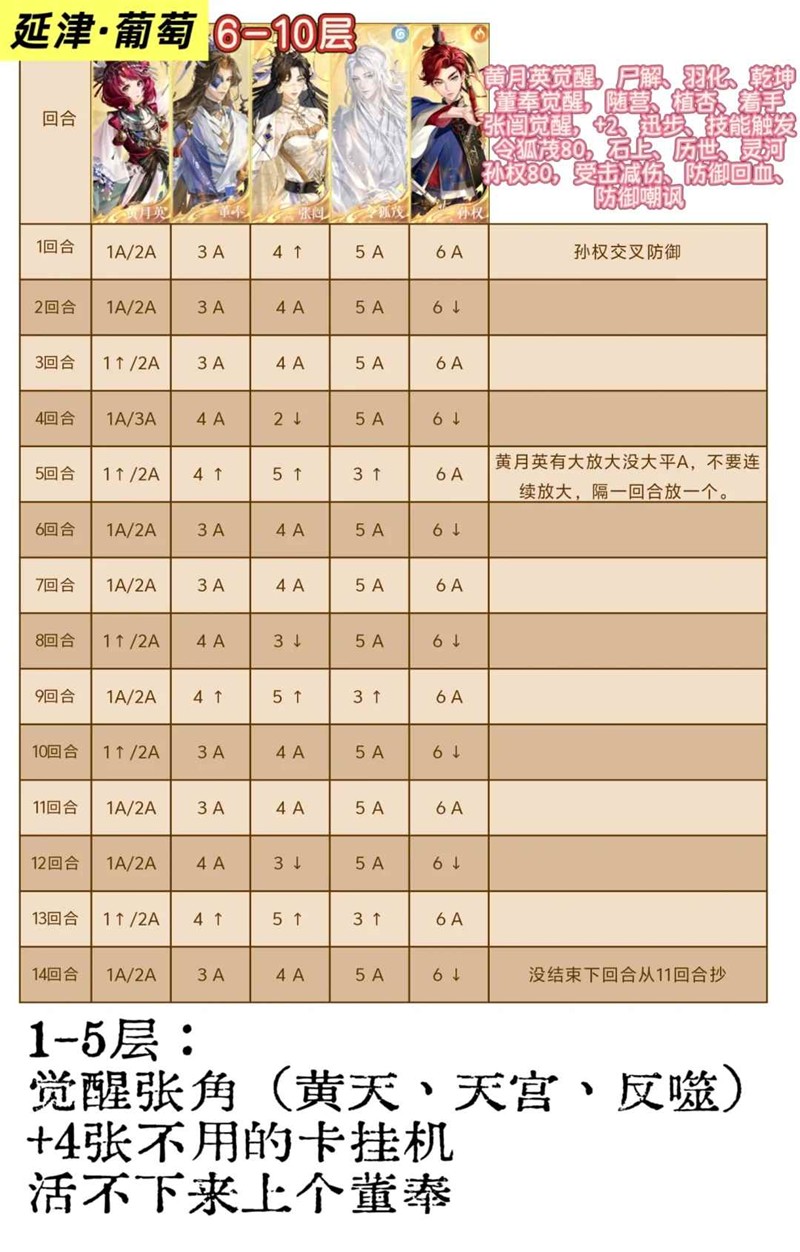 第6-10回合要让1.3.5号位都死1次且最后收张角时我方5人存活,所以必须带张鲁。不赌翻倍,对非洲人很友好。