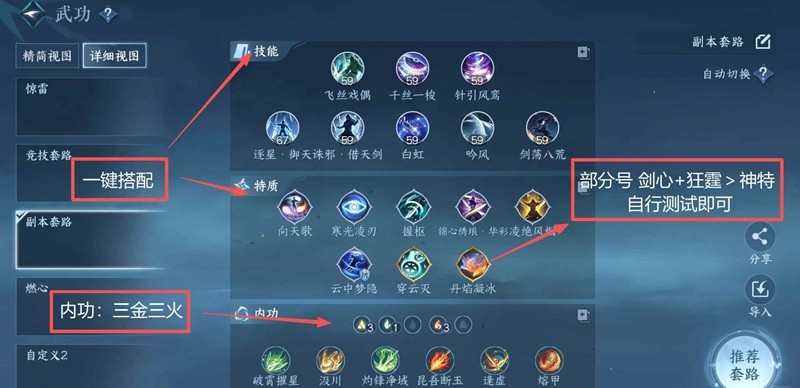 昆吾/破霄/汲川/逢虚/熔甲这五个内功不动,最后一个从灼锋/点名录/锐锋/破戟中选择收益最高的即可!!