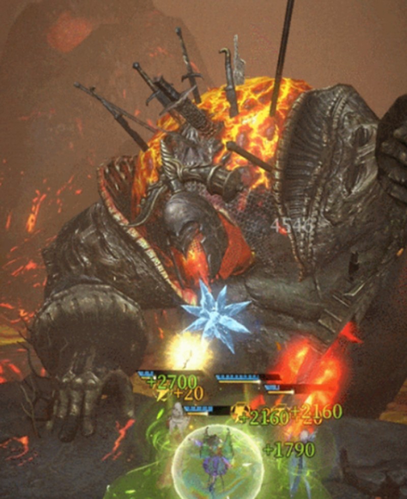 巨人巴姆原本是守护者,因被囚禁于岩浆池而充满怒火,成为地下城堡4中极具挑战性的中期BOSS。他的普通攻击会对全体成员造成可观的物理伤害,若其技能附带滚烫岩浆效果,则额外附加魔法伤害,并使目标进入灼烧状态。灼烧状态下,每2秒将受到一次持续性的魔法伤害,叠加多层后对队伍生存构成极大威胁,因此及时驱散或避免被频繁命中至关重要。