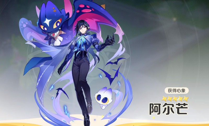 阿尔芒作为另一位五星角色,其形象以黑色为主调,搭配神秘的蓝色技能特效,整体散发出忧郁而深邃的气场。他所佩戴的护符名为“永夜”,是一件蓝色斗篷类装备,不仅提升视觉表现,也与其能力相呼应。阿尔芒的专属法则赋予全队一定的斩杀机制:当敌方单位生命值低于10%时,可直接将其斩杀。同时,队伍中的黑暗属性精灵也能获得强化,可对生命值低于20%的敌人发动斩杀。这一设定使得阿尔芒在清理残血目标时效率极高,非常适合快节奏的推图与竞技场战斗。