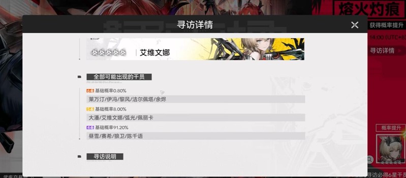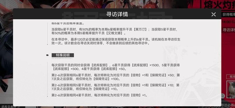联合寻访池设有大保底机制,即在120次抽取内必定获得当期UP的六星干员。该计数不会跨卡池继承,且在卡池结束后清零,因此需要在限定时间内完成抽取目标。此外,联合寻访池每期会UP两名六星干员,每位概率各占0.4%,其余六星共享剩余0.4%的概率。若目标角色不在UP名单中,实际抽中期望干员的概率会被进一步稀释。
