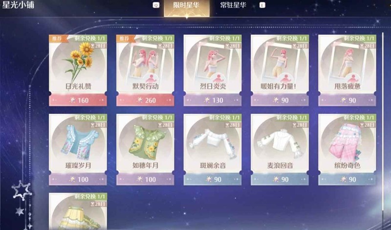 限时星华小铺更新,共计720星光结晶的服饰和570星光结晶的动作。常驻星华上新270结晶的动作。