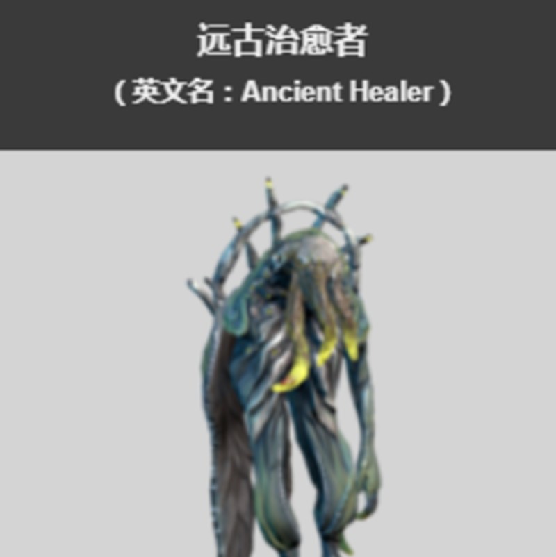 远古治愈者的外观呈现淡蓝色调,配以黄绿色的下颚,整体造型接近人形。该角色每15秒可为10米范围内的队友恢复生命值,效果持续4秒。