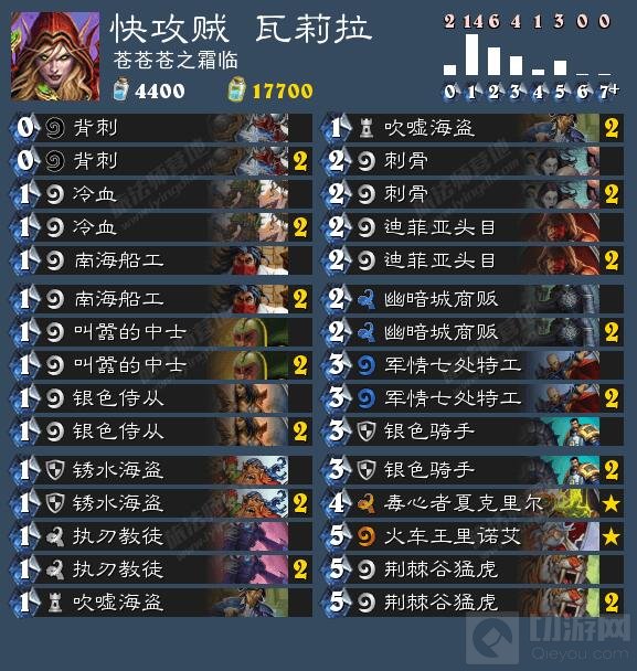 非常简洁明了的卡组,全力打脸。昨天看直播的时候瓦娘好像从3级用这套牌冲到了传说(并不是全程围观),喜欢快攻的小伙伴不妨一试。