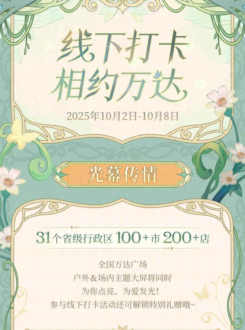 时空中的绘旅人周年特别活动,全国万达线下打卡有礼将于10月2日开启,跨越山海,为你点亮。和他相约,记录与他的每一个心动瞬间~线下打卡礼品以各打卡点的实际数量为准,全国共派发150000张。一起来和小编看看吧~