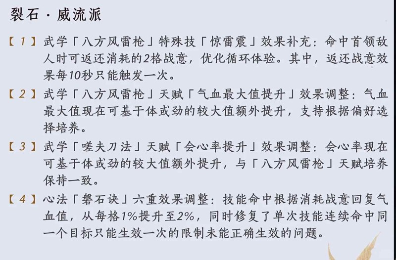 (1)裂石威武库移除了体和气血,现在铁子们终于可以选择威武库转律了