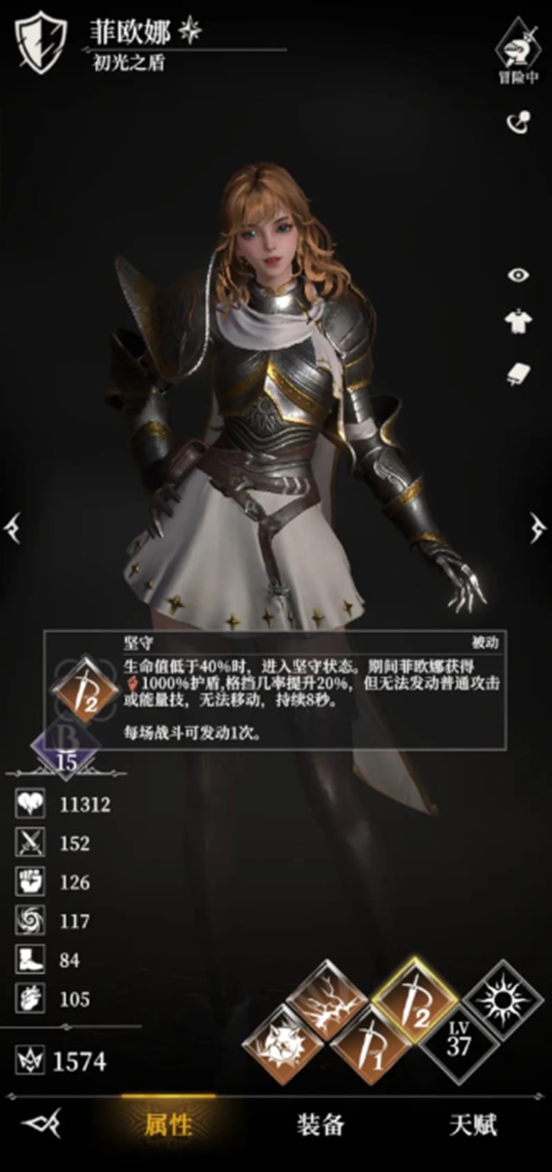 菲欧娜,也被称作初光之盾,是地下城堡4中春光阵营的重要角色之一,担任队伍前排承伤的核心位置。她拥有较高的基础防御属性,并随着等级提升和天赋解锁逐步增强生存能力。当玩家解锁其天赋4-2后,菲欧娜的承伤效率显著提高,配合光奶角色提供的40点治疗加成,使其在持久战中表现尤为出色。虽然她的输出并非顶尖,但在面对大型BOSS时仍能打出可观的单体伤害,属于攻守兼备型角色。装备搭配方面,推荐使用回能套以加快技能循环,若追求控制效果,可选择铁腕臂甲提升真伤触发概率。