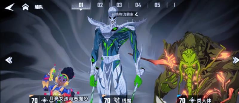 月亮女孩、恶魔恐龙与类人体的组合则主打召唤流玩法。这三位角色通过技能可频繁召唤出作战单位,形成“人海战术”的压制效果。随着召唤物数量增加,整体输出能力呈指数级上升。月亮女孩和类人体的技能还能进一步强化召唤单位的攻击力与生存能力,使战场控制力大幅提升。该阵容参与签到活动即可逐步集齐角色,非常适合资源有限的玩家长期使用。
