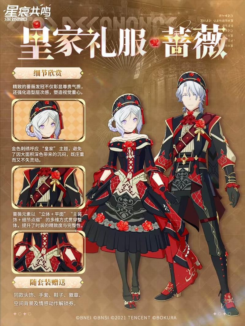 备受期待的「皇家礼服・蔷薇」在《星痕共鸣》游戏中正式上线,以其标志性的红黑配色,为冒险者们带来了古典的高贵气韵与蔷薇的夺目美丽。