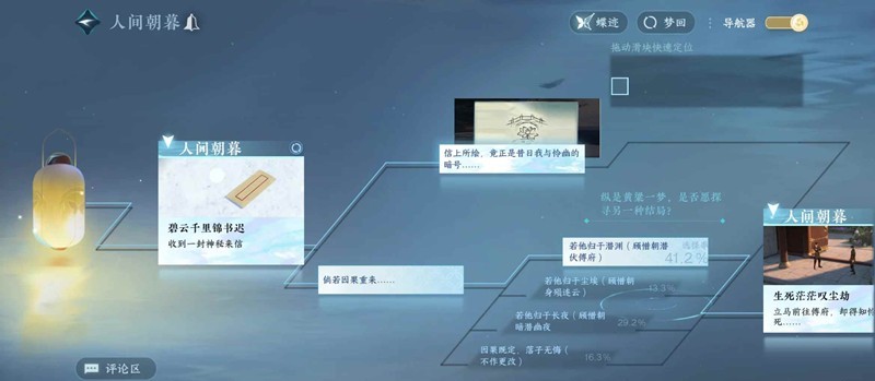 开始梦回第一个节点「碧云千里锦书迟」,选择“若他归于潜渊”