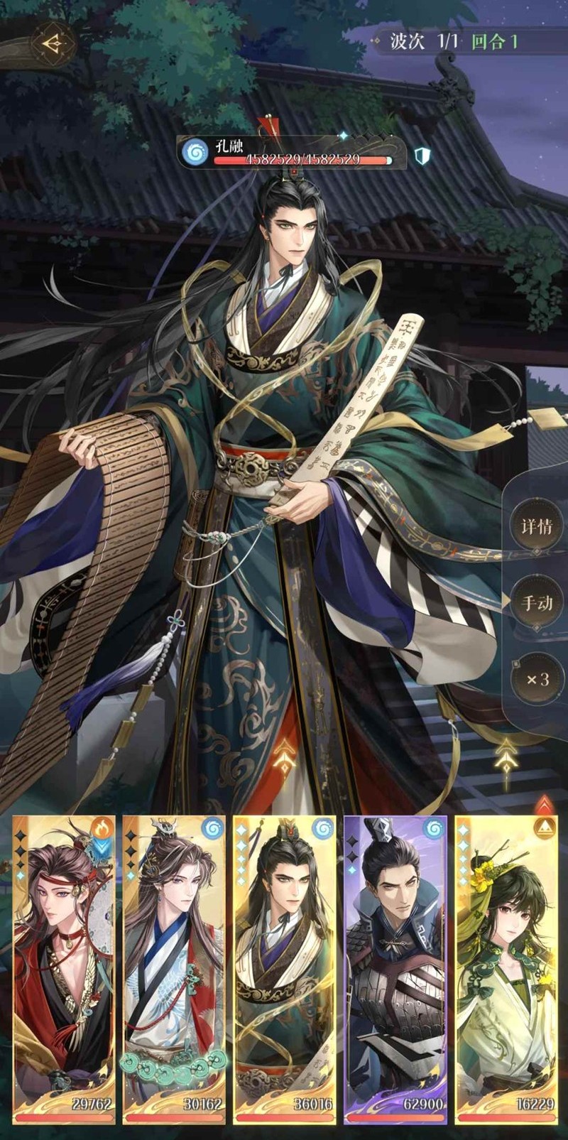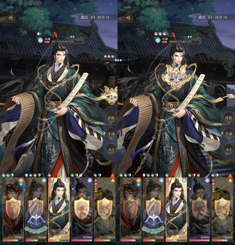我的出手跟老师几乎完全一致 除了孔融开大是随机的 第一个大颜良没嘲讽 其余后面我都对轴孔融开大回合颜良开大 不然打到诸葛瑾身上站不住