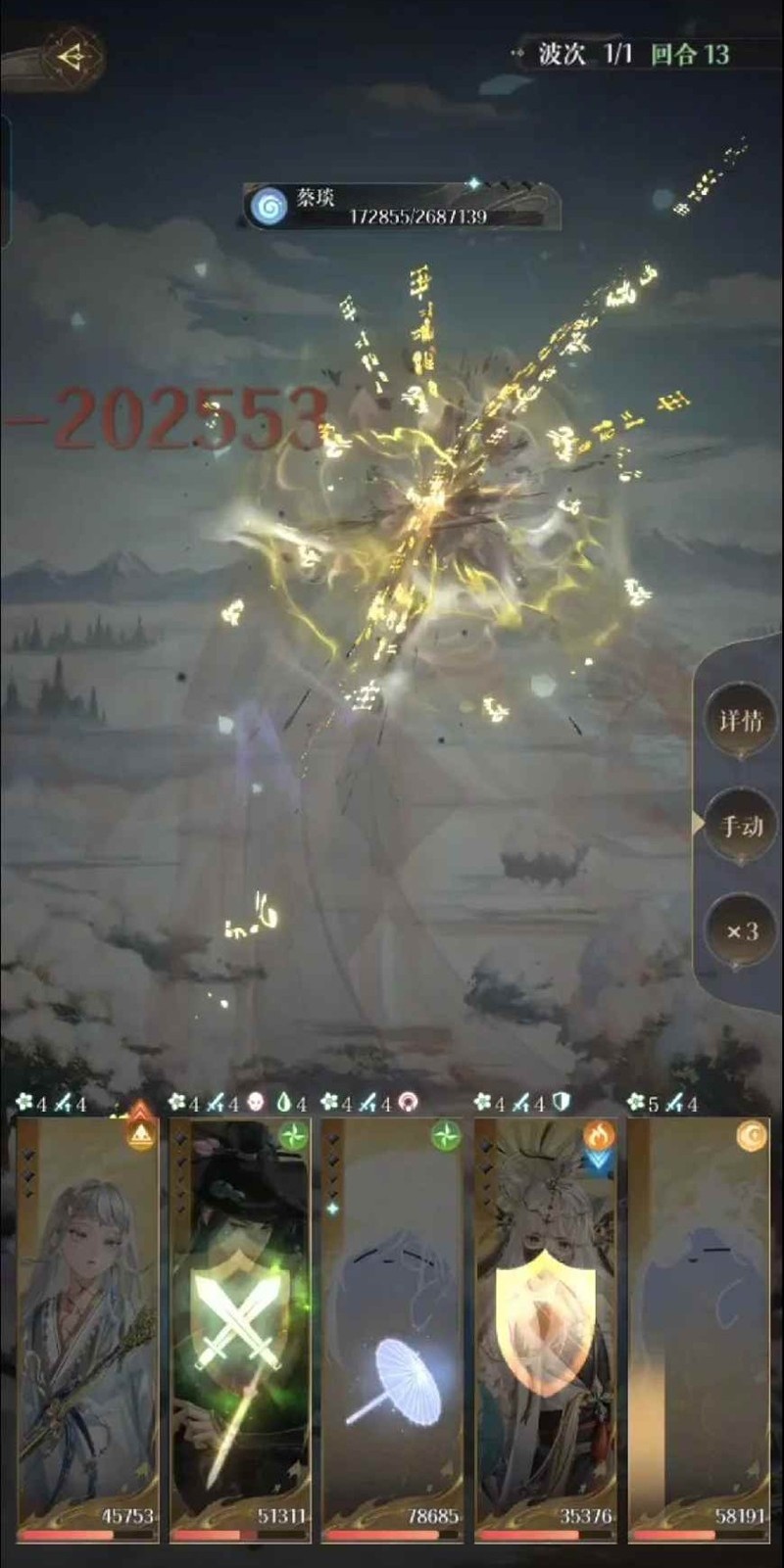 个人拙见:最好的攻击星石给姨姨,其次张邈,再是董奉。陈登夏侯惇星石看着给,能活着就行。跟着原帖评论区置顶的16回合图片打,打不过就想办法提练度、星石、星级吧。