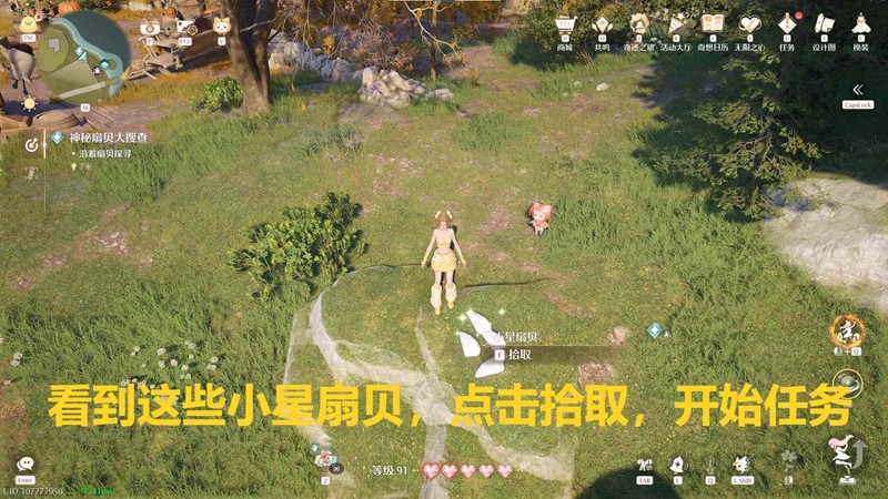 我们传送到 涟漪之窖旁 锚点 ,点击追踪任务,如果正好做完是布布的任务,再旁边就可以看到一小堆小星扇贝;