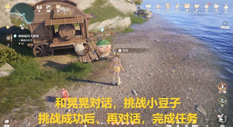 然后和晃晃对话,挑战小豆子,玩容易红温的榨汁小游戏;