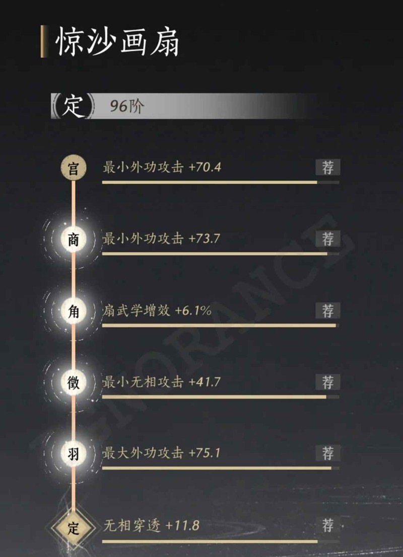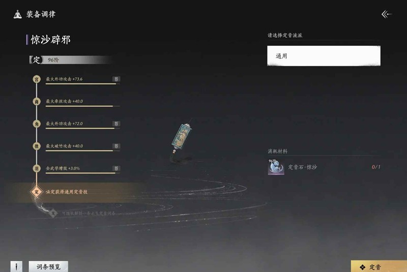 传律:利用满调律96阶金装(无需定音)喂到已承音的新96阶装备(胚子),用于提升其词条数值。