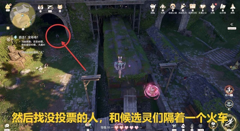 然后找还没投票的 “人”,就在花花,大盾旁边的洞边;