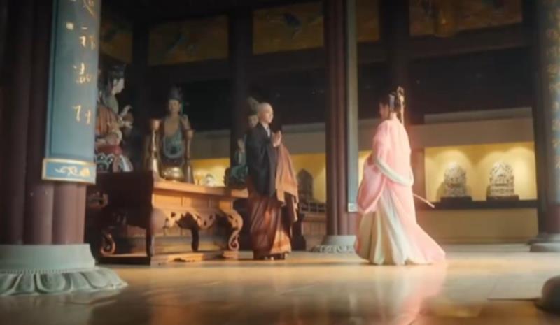 高阳公主自幼在宫中备受宠爱,一身鹅黄宫装衬得她明艳动人,领口的缠枝莲纹与腰间玉笛相映成趣,行走间清脆作响,尽显娇贵之气。她在盛世天下中的性格设定天真却不失倔强,正是这份被纵容长大的执拗,让她在面对皇权安排的婚姻时选择了反抗。她的故事从大慈恩寺为父皇祈福开始,偶然路过译经房,看见玄奘弟子辩机手持烛台,神情专注,那一瞬间的心动成为她情感的起点。这一幕不仅是盛世天下高阳公主剧情的开端,也是她命运转折的关键。