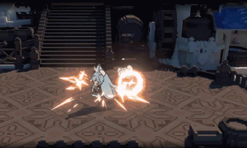 伊尔夏的普通攻击以枪械结合近战动作为核心,首次攻击会向前方进行短距离冲刺并伴随身体旋转,形成范围打击效果。后续几段攻击延续旋转机制,能够在单次连击中覆盖多个敌人,尤其适合在密集战局中打开突破口。该攻击模式不仅具备良好的清杂能力,还能通过流畅的动作衔接快速调整站位,为后续技能释放创造有利条件。