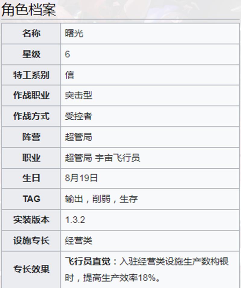 除了战斗能力,曙光在基地经营中同样具备实用价值。她的飞行员直觉特性可在入驻经营设施后提升18%的生产效率,对资源积累有明显帮助。这一能力让她在非战斗场景中也占据一席之地,成为兼顾战斗与建设的多面手角色。新月同行曙光的综合强度在当前版本中表现亮眼,无论是在推图、挑战高难副本还是基地发展环节都具备较高适配性。以上就是新月同行曙光的强度解析内容,希望切游小编带来的这篇攻略能为你提供有效参考。